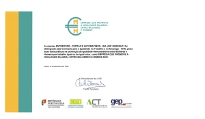 A Entredoor – Portas e Automatismos, Lda. foi distinguida pela Comissão para a Igualdade no Trabalho e no Emprego – CITE, pelas suas boas práticas na
